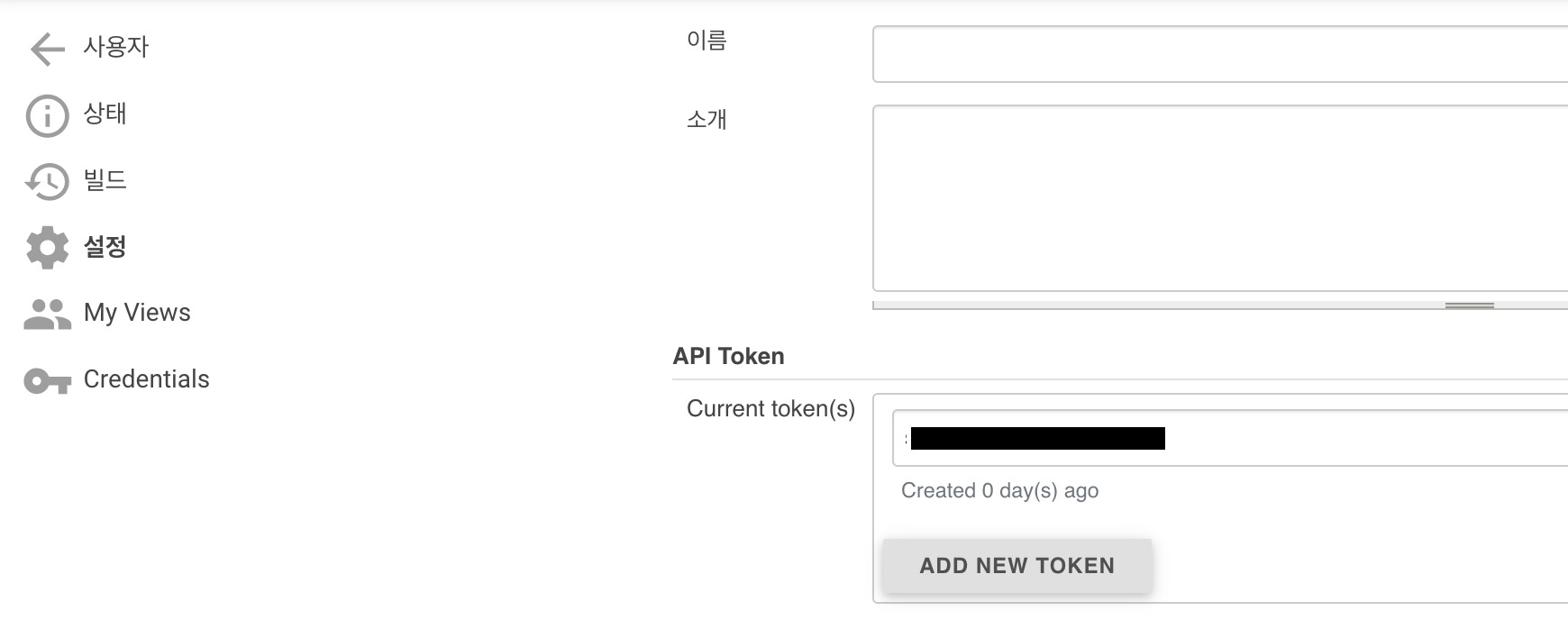 해당 탭에서 ADD NEW TOKEN을 눌러 인증키의 이름을 정하고 토큰을 발급받을 수 있습니다.