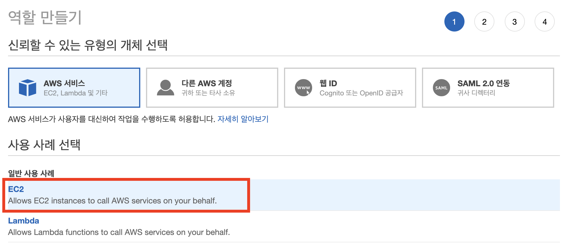 먼저 우리가 애플리케이션을 배포할 EC2 를 하나 생성하겠습니다.