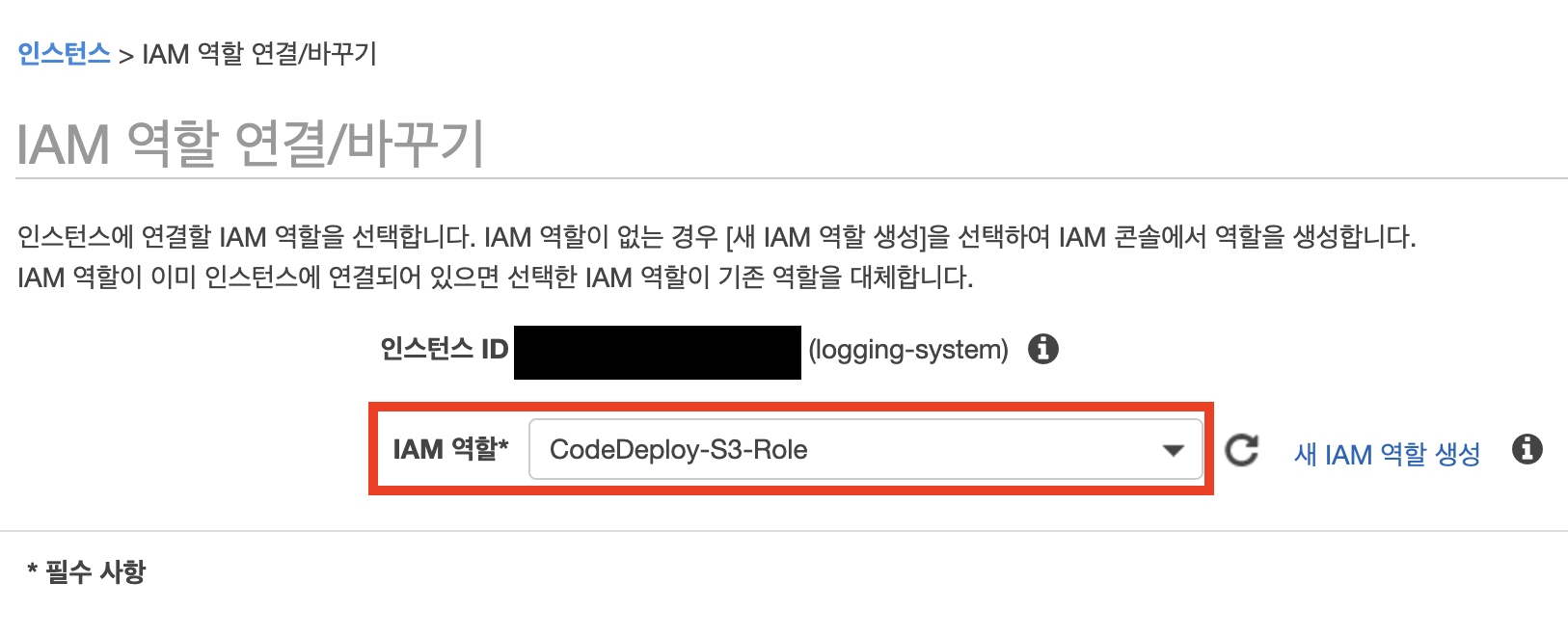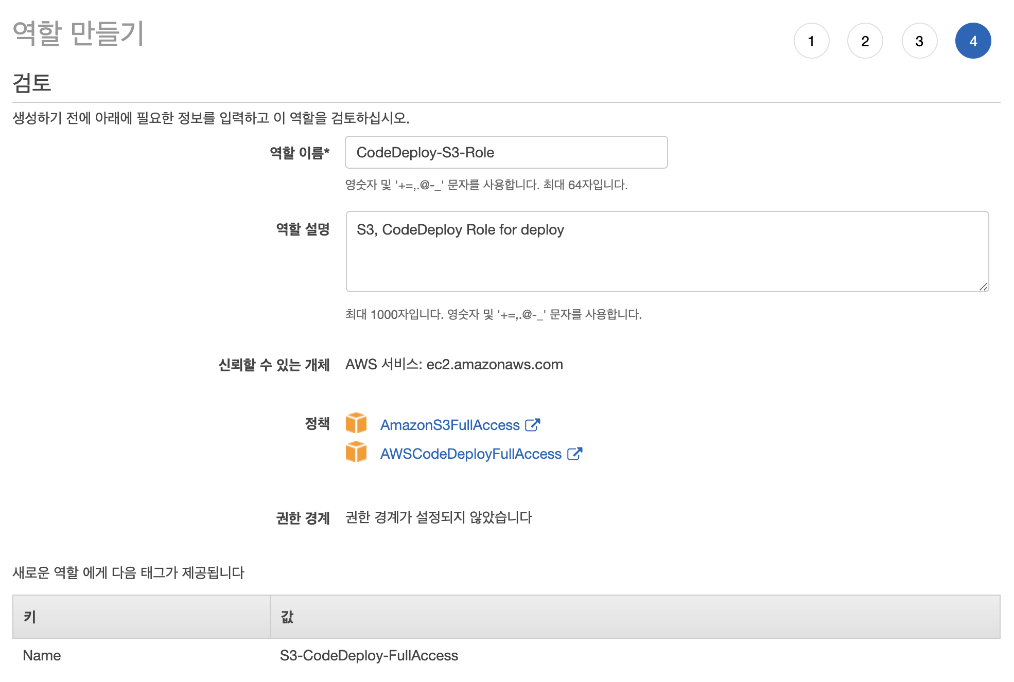 지금까지의 과정 순서를 똑같이 따라하셨다면, CodeDeploy Agent를 시작한 후에 IAM Role을 EC2에 부여했기 때문에 아마 Agent가 IAM Role을 가지고 있지 않아 배포가 실패할 것입니다.