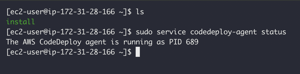 CodeDeploy Agent 가 실행되었음을 확인할 수 있습니다!