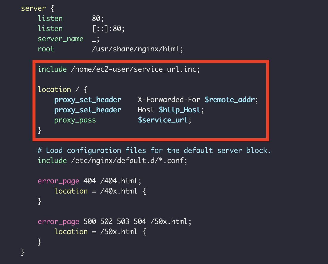 - 새로 띄운 WAS의 포트를 nginx가 읽을 수 있도록 service_url.inc에 내용을 덮어씁니다.