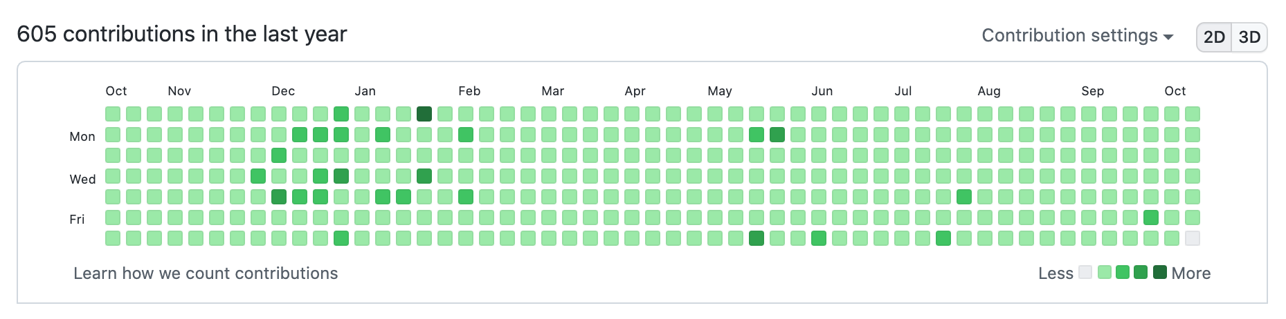 돌아보니 2020년 3월 중순부터 이 글을 작성하는 2021년 10월 중순까지 19개월 정도 일일커밋을 진행했다. (오래도 했다)